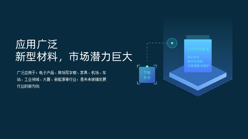 科技玻璃廣泛應(yīng)用于:電子產(chǎn)品、商場(chǎng)寫(xiě)字樓、家具、機(jī)場(chǎng)、車站、工業(yè)領(lǐng)域、大廈、新能源等行業(yè),是未來(lái)玻璃發(fā)展行業(yè)的新方向。